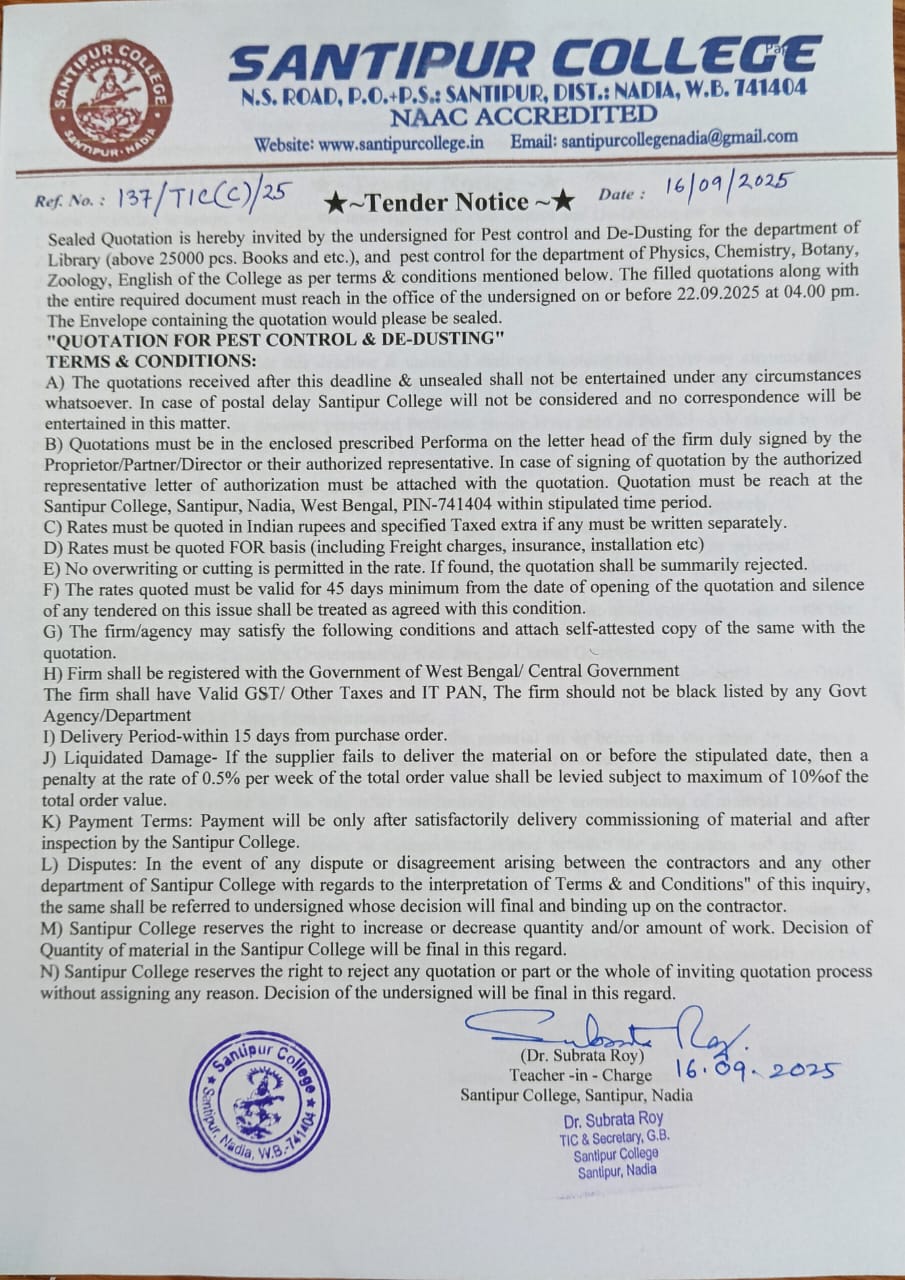 1 | 16 Sep 2025 | Quotation for Pest Control and De-Dusting | Download | tr >